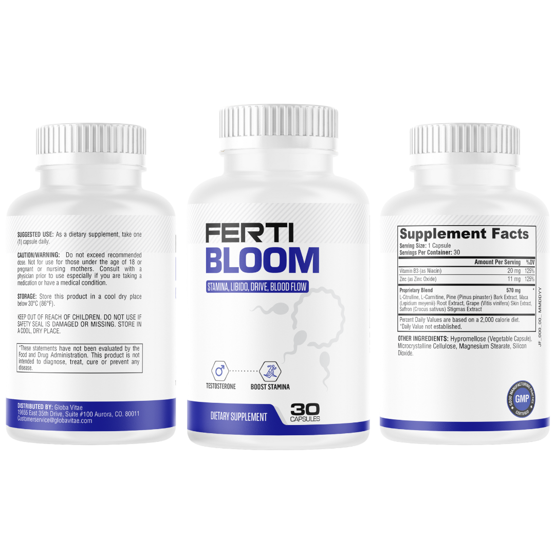 Ferti Bloom is the only product that combines powerful ingredients such as L-Citrulline, Maca root, and Saffron Stigmas Extract into a single safe and effective compound.